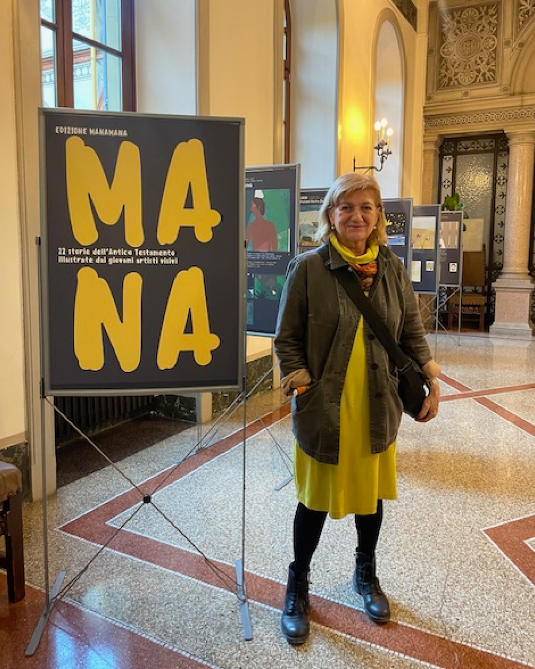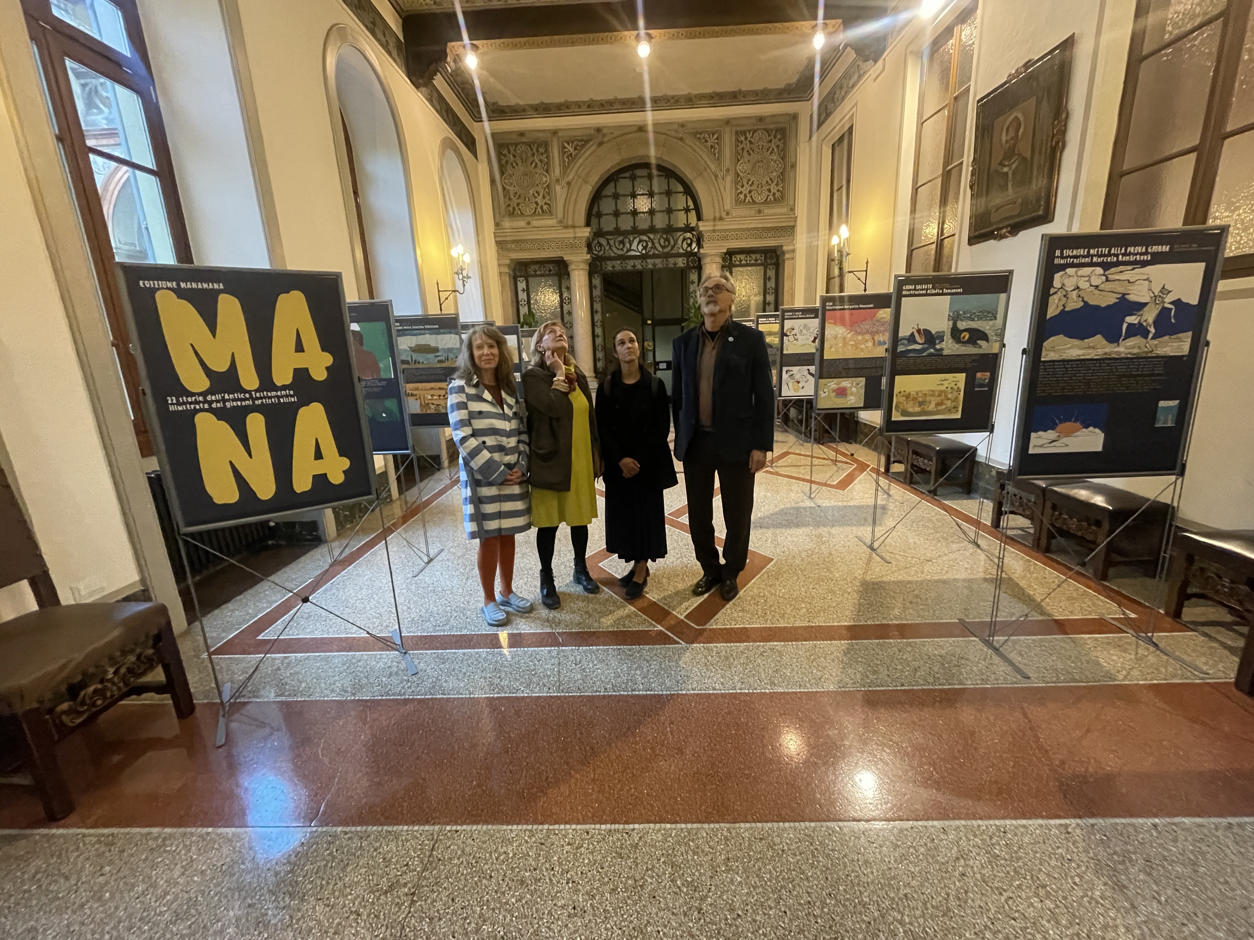 V Miláně výstavu zahájily ředitelka české školy sídlící v Instituto Marcelline Hana Crotti Křenková, autorka biblické edice a nakaldatelka Ivana Pecháčková a ilustrátorka dvou knih z edice Monika Novotná za přítomnosti generálního konzula ČR Ing. Ivana Počucha a bývalého honorárního konzula Dr. Giorgio Franca Alettiho, kteří neskrývali své nadšení ze svěžích ilustrací biblických knih edice manamana. Dr. Aletti dokonce mluvil o tom, že by si edice zasloužila překlad do italštiny i angličtiny a šíření i do jiných zemí. Ve třech dílnách si české děti vytiskly obrázky s tématy Stvoření světa a v literární dílně si velmi dobrou češtinou vyprávěly starozákonní příběhy Davida a Goliáše. Iva Pecháčková předvedla několika učitelkám češtiny, jak pracovat se čtenářskými listy k celé edici.
