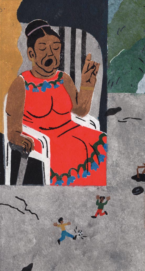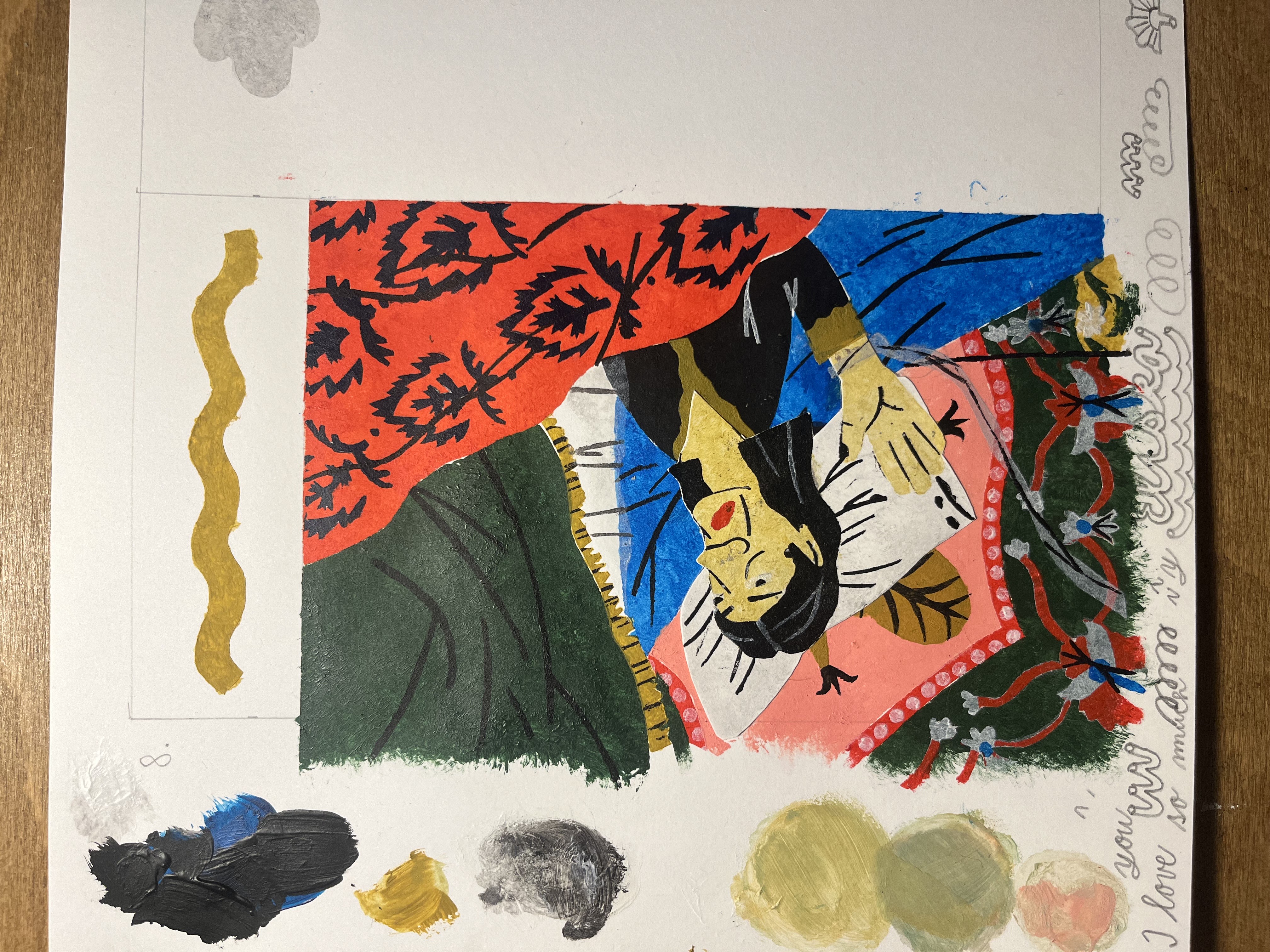 Obecně se vždy snažím jen nekopírovat doslovně text, ale trochu si do ilustrace přidat, nebo naopak ubrat, aby si čtenář mohl příběh sám domyslet. Zde jsme se s Bárou domluvily, že tajemnou necháme postavu Medvěda, která se v knize objevuje a není úplně jasné, zda jde o muže či opravdového medvěda. Taky jsem se snažila pracovat s kompozicí a někdy zachytit detaily, jindy zas celou situaci. Mým záměrem bylo vystihnout dynamičnost spolupráce dětí a cirkusáků, taky ale melancholii a šťastný konec.