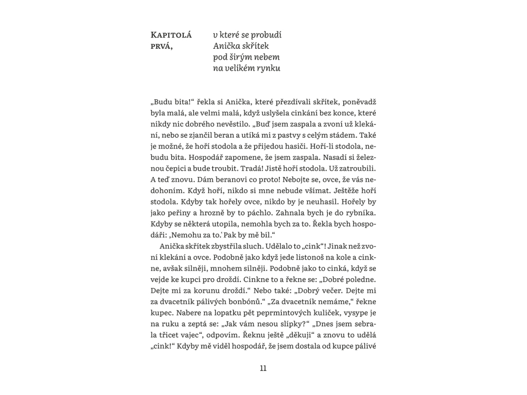 První vydání pohádkového románu Anička skřítek a Slaměný Hubert Vítězslava Nezvala vyšlo v roce 1936 s kresbami Toyen a poté jej ilustroval Jiří Trnka v 60. letech minulého století. Nyní vychází kniha poprvé s obrazovým doprovodem konceptuálního malíře a ilustrátora Viktora Pivovarova a čerpá z ruského vydání z roku 1980. Bohatý ilustrační doprovod provází čtenáře surrealistickým příběhem plným hravosti a fantazie v originálním typografickém a grafickém zpracování.