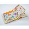 Barvy jsou rozjásané, vše tančí, víří, předvádí se a čtenář žasne. Může otáčet stránku za stránkou, jak je v knihách zvykem, ale teprve když ručně lepené strany roztáhne do šířky jako harmoniku, všimne si, jak na sebe ilustrace plynule navazují a jak se zvolna stmívá. Čas na pouti doslova letí – jak se dlouho očekávaná předletní neděle pod záplavou dojmů přehoupne k soumraku, pozadí kreseb postupně tmavne. Do popředí nápaditě ilustrované dvojstránky najednou vystupuje zívající panáček: ještě naposledy uprosit maminku, ještě jedno kolo – a střih na poslední stranu. Je tu nové ráno. Byl to sen?